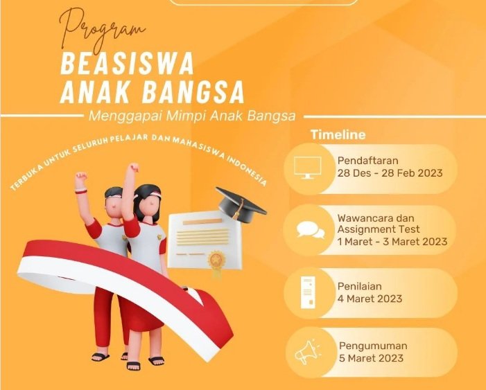 Mari kita dukung program beasiswa dan berikan kesempatan kepada lebih banyak anak bangsa untuk meraih cita-cita mereka. Dengan pendidikan yang berkualitas, mereka akan menjadi pemimpin masa depan yang akan membawa Indonesia menuju kemajuan dan kesejahteraan.