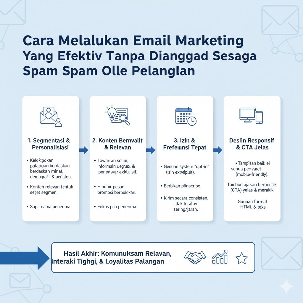 Email marketing tetap menjadi salah satu instrumen pemasaran digital dengan tingkat pengembalian investasi atau ROI tertinggi jika dilakukan dengan strategi yang tepat. Namun, tantangan terbesar bagi para pemasar saat ini adalah menembus kotak masuk pelanggan tanpa berakhir di folder spam. Di tengah banjir informasi digital, pelanggan menjadi sangat selektif terhadap pesan yang mereka izinkan masuk ke ruang pribadi digital mereka. Melakukan email marketing yang efektif bukan sekadar mengirim pesan massal, melainkan membangun komunikasi yang relevan, personal, dan memberikan nilai tambah nyata bagi penerimanya agar hubungan jangka panjang dapat terjalin dengan harmonis.